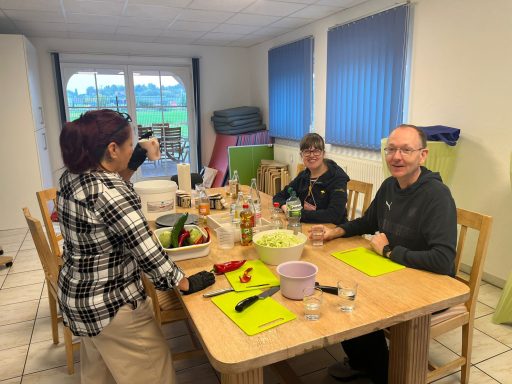 Unser inklusives Kochprojekt verbindet erfolgreich Menschen mit und ohne Behinderung! Bereits vier Termine haben stattgefunden – mit viel Spaß, Teamgeist und leckerem Essen. Gemeinsam wurden unter anderem Burger, Schnitzel, Hähnchen und Lasagne zubereitet – und natürlich durfte ein köstlicher Nachtisch nie fehlen.