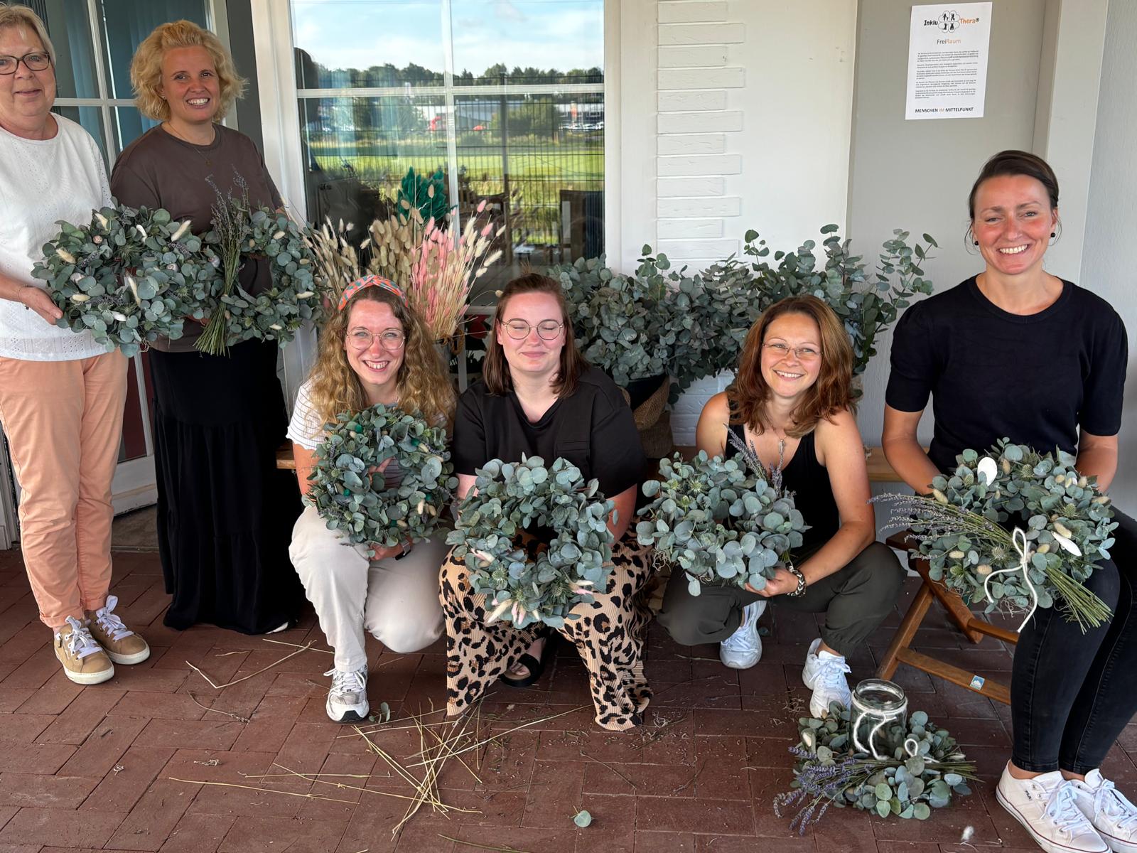 Unser inklusiver Floristikworkshop war ein voller Erfolg! Sechs Teilnehmerinnen gestalteten mit viel Freude und Kreativität wunderschöne Eukalyptuskränze. In entspannter Atmosphäre, bei Sekt und kleinen Häppchen, entstanden tolle Gespräche und echte Wohlfühlmomente. Ein rundum gelungener Nachmittag voller Duft, Deko und guter Laune!